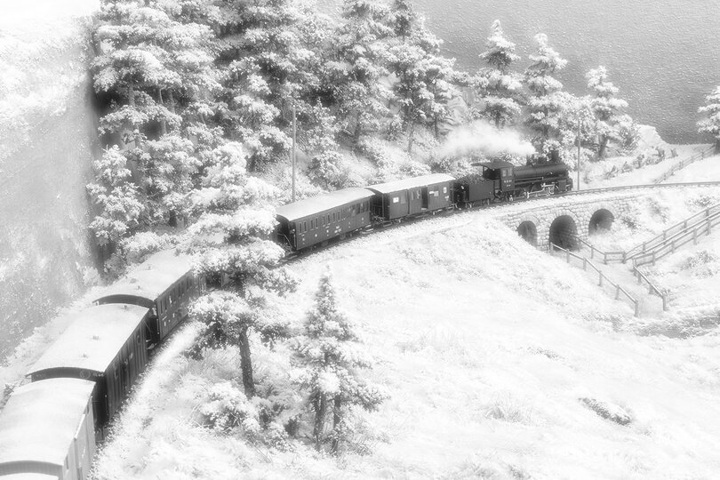 Die Dampfepoche bei einer RhB-Modellanlage in H0m ist sicherlich selten anzutreffen. Doch die Epoche I der Eisenbahn finde ich einfach schön, weshalb schon meine vorherige N-Modulanlage in der Länderbahnzeit angesiedelt war. 1994 übernahm ich die H0m-Sammlung meines Bruders, da sie vier Dampfloks von Ferro-Suisse enthielt. Die alten Bilder der Rhätischen Bahn faszinieren mich, weshalb ich beschloss, diese Zeit im Modell nachzubauen. Da es keine passenden Wagen zu den Lokomotiven gab, blieb mir nichts anderes übrig, als die Wagen selbst zu bauen. So wurde der Wagenbau zu einer meiner Leidenschaften. Mehr darüber ist unter Rollmaterial zu erfahren.