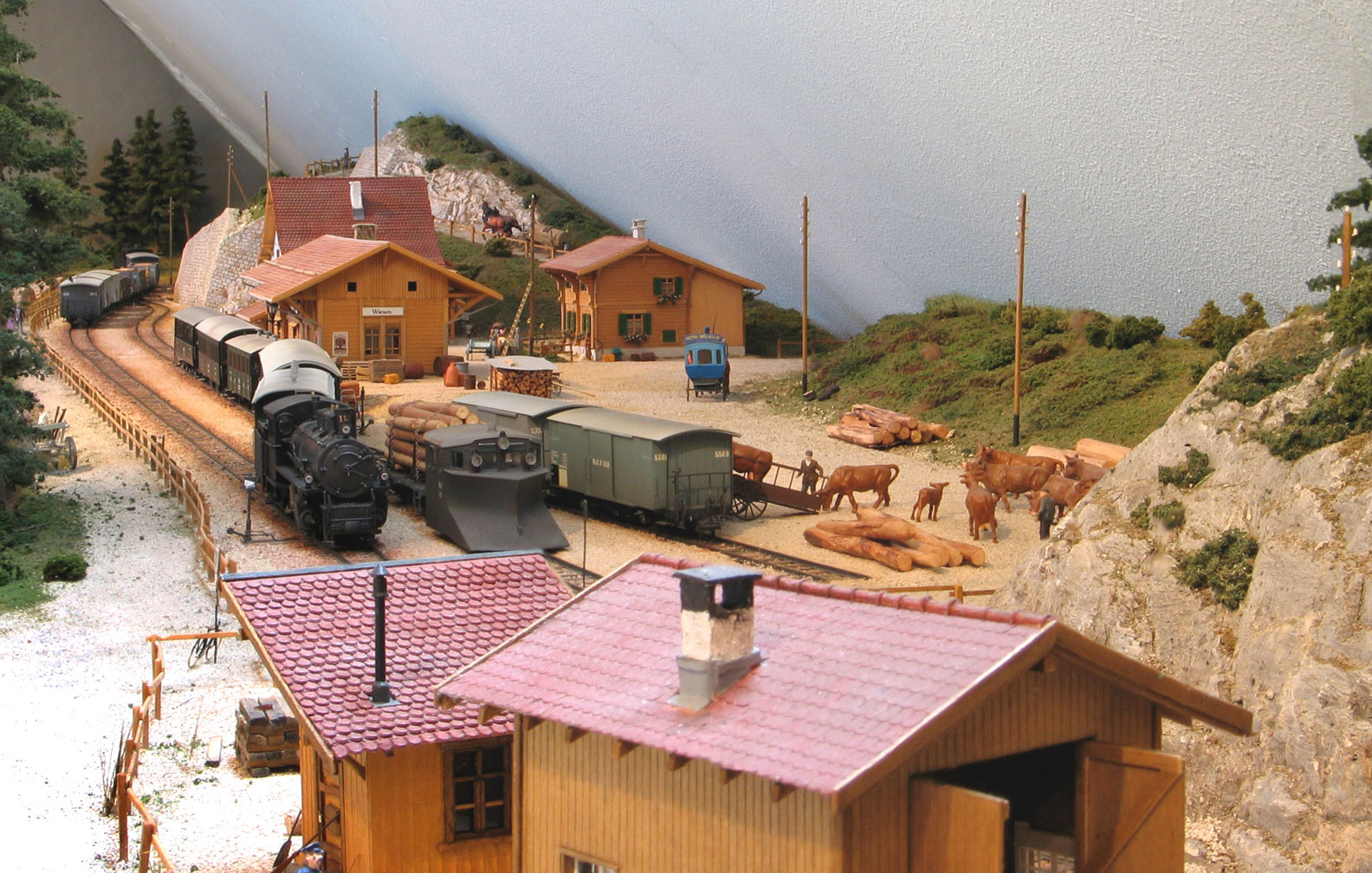 Während des Baus der Station Wiesen erwog ich zunächst, das alte Restaurant selbst zu errichten. Aufgrund der vorgesehenen Lage unter einer Dachschräge entschied ich mich jedoch vorerst dagegen. Im Jahr 2013 brachte MBA Pirovino den Laser-Bausatz des historischen Restaurants zur Station Wiesen, woraufhin ich mich entschloss, dieses Gebäude doch noch in meiner Station zu integrieren. Auch wenn der Standort nicht originalgetreu ist, wirkt das Bauwerk aus meiner Sicht, an dieser Stelle angemessen.
