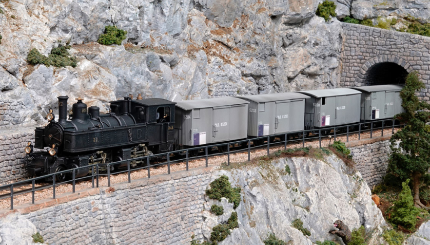 Für den L3 wurden Bemo's Hochbordwagen grau lackiert und neu beschriftet.