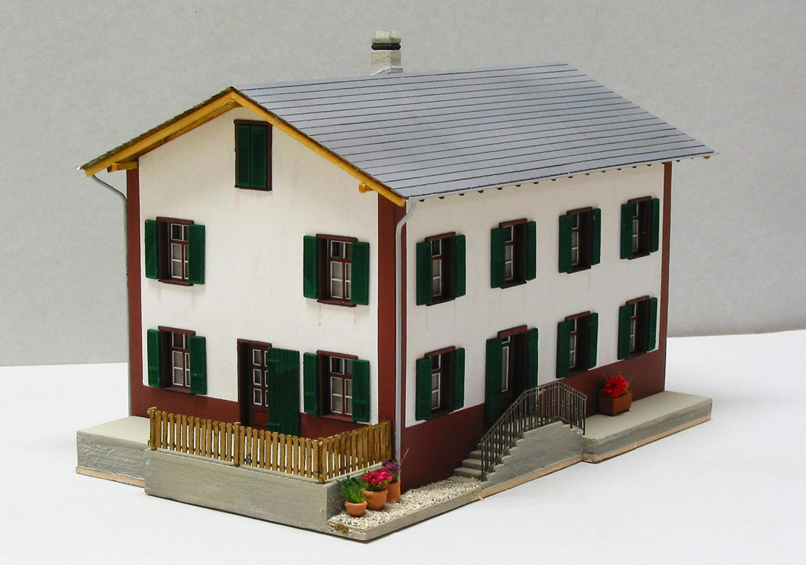 Während des Baus der Station Wiesen erwog ich zunächst, das alte Restaurant selbst zu errichten. Aufgrund der vorgesehenen Lage unter einer Dachschräge entschied ich mich jedoch vorerst dagegen. Im Jahr 2013 brachte MBA Pirovino den Laser-Bausatz des historischen Restaurants zur Station Wiesen, woraufhin ich mich entschloss, dieses Gebäude doch noch in meiner Station zu integrieren. Auch wenn der Standort nicht originalgetreu ist, wirkt das Bauwerk aus meiner Sicht, an dieser Stelle angemessen.