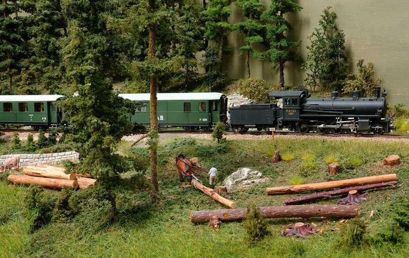 Die Dampfepoche bei einer RhB-Modellanlage in H0m ist sicherlich selten anzutreffen. Doch die Epoche I der Eisenbahn finde ich einfach schön, weshalb schon meine vorherige N-Modulanlage in der Länderbahnzeit angesiedelt war. 1994 übernahm ich die H0m-Sammlung meines Bruders, da sie vier Dampfloks von Ferro-Suisse enthielt. Die alten Bilder der Rhätischen Bahn faszinieren mich, weshalb ich beschloss, diese Zeit im Modell nachzubauen. Da es keine passenden Wagen zu den Lokomotiven gab, blieb mir nichts anderes übrig, als die Wagen selbst zu bauen. So wurde der Wagenbau zu einer meiner Leidenschaften. Mehr darüber ist unter Rollmaterial zu erfahren.