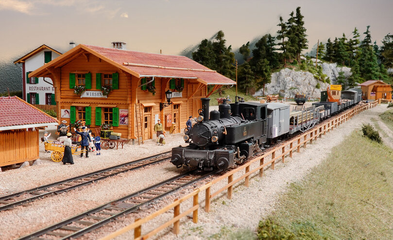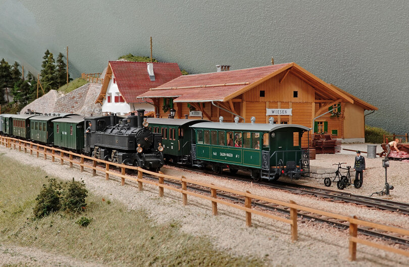 Da für mich ein Bahnhof zur Modellbahn gehört, habe ich mich für die Station Wiesen entschieden, weil dieser sehr kurz ist. Auch die beiden ersten Module, der Bärentritt und das Lehenviadukt, befinden sich im gleichen Tal. Da das Wohngebäude der Station erst um 1912 fertiggestellt wurde, wählte ich das Jahr ab 1913 als Zeitraum. Zudem fand ich eine Rollmaterialliste der RhB von 1915/16 im Buch "Die Dampflokomotiven der Rhätischen Bahn" von Claude Jeanmarie, die mir einen guten Überblick über die Wagennummern gab.