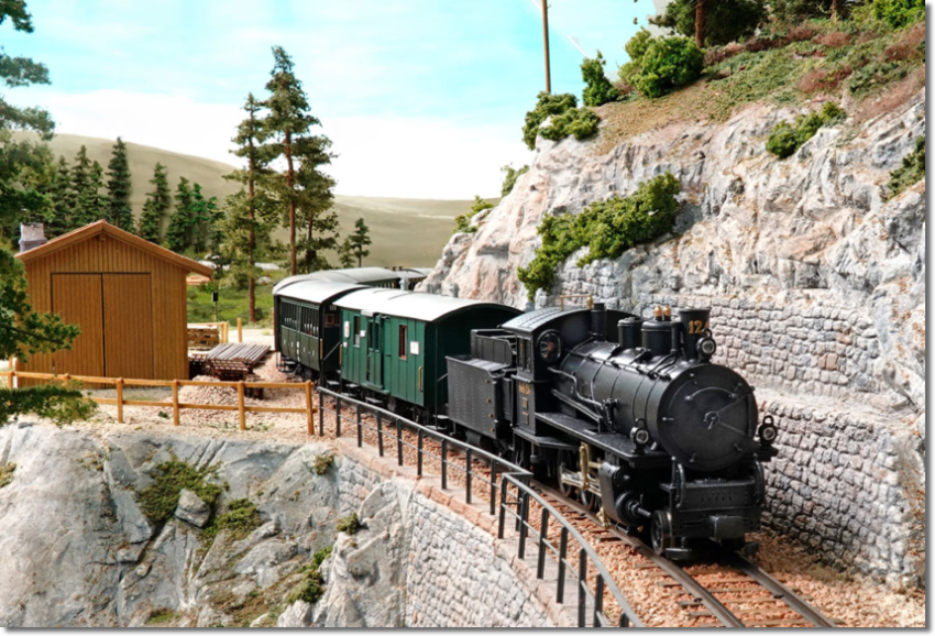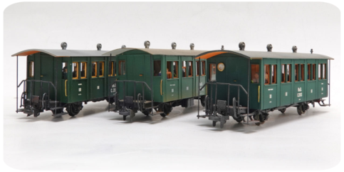 Für meine gewählte Epoche musste ich viele Wagen selber bauen. Für Personenwagen verwendete ich Bemo-Fahrgestelle und baute den Wagenkasten selbst, oder ich nahm Bemo-Personenwagen, die umgebaut wurden, damit sie zu meiner Epoche passen.