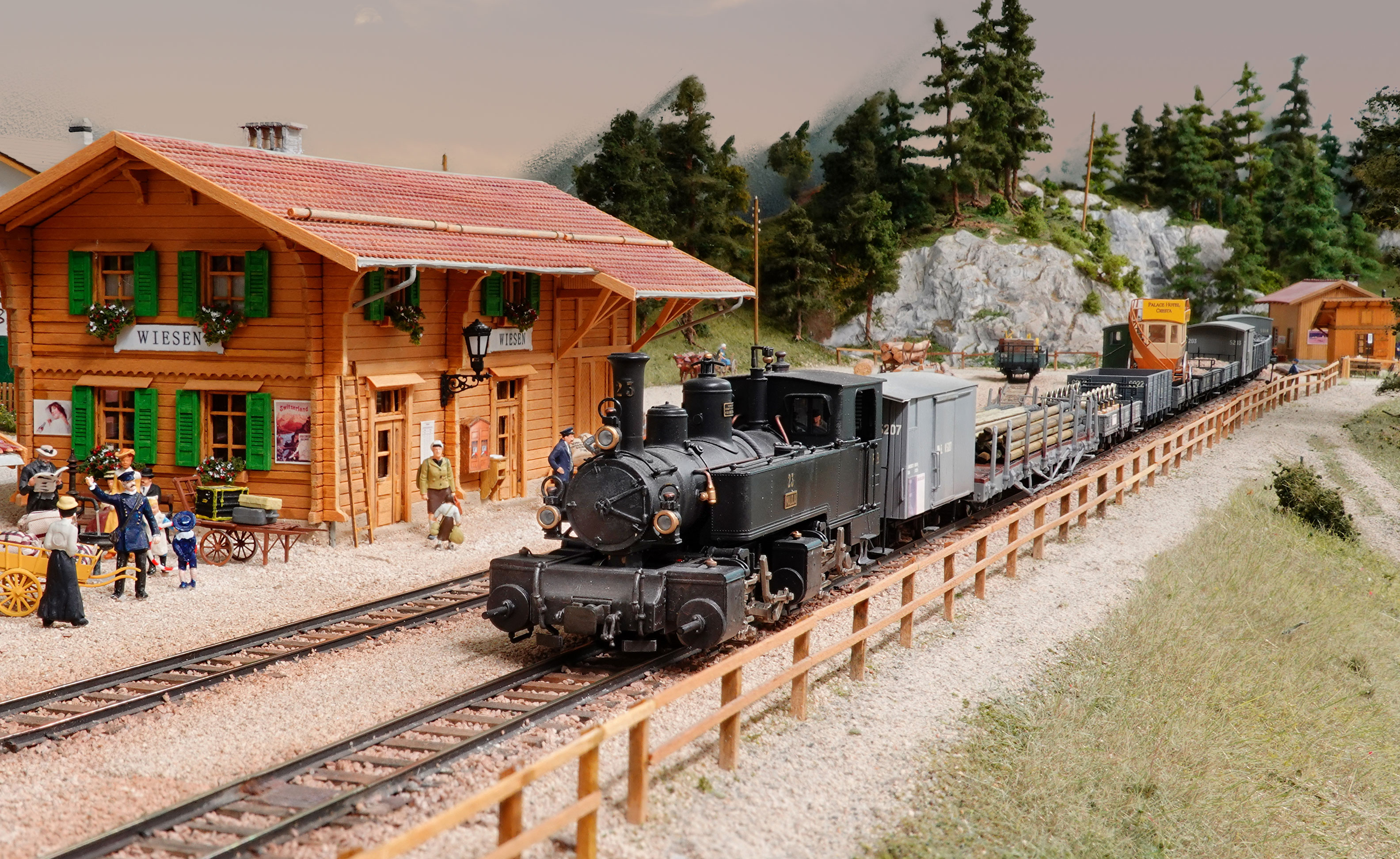 Auf meiner Anlage fahren viele Personenwagen mit Fahrgästen. Die meisten Preiser-Figuren habe ich selbst bemalt. Dieser Aufwand lohnte sich aufgrund der Vielfalt der Figuren sowie preislich. Zudem wurden sämtliche Wagen mit Speichenrädern ausgerüstet.